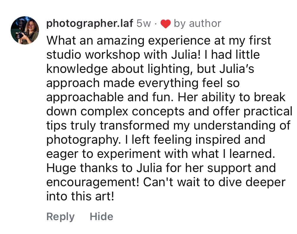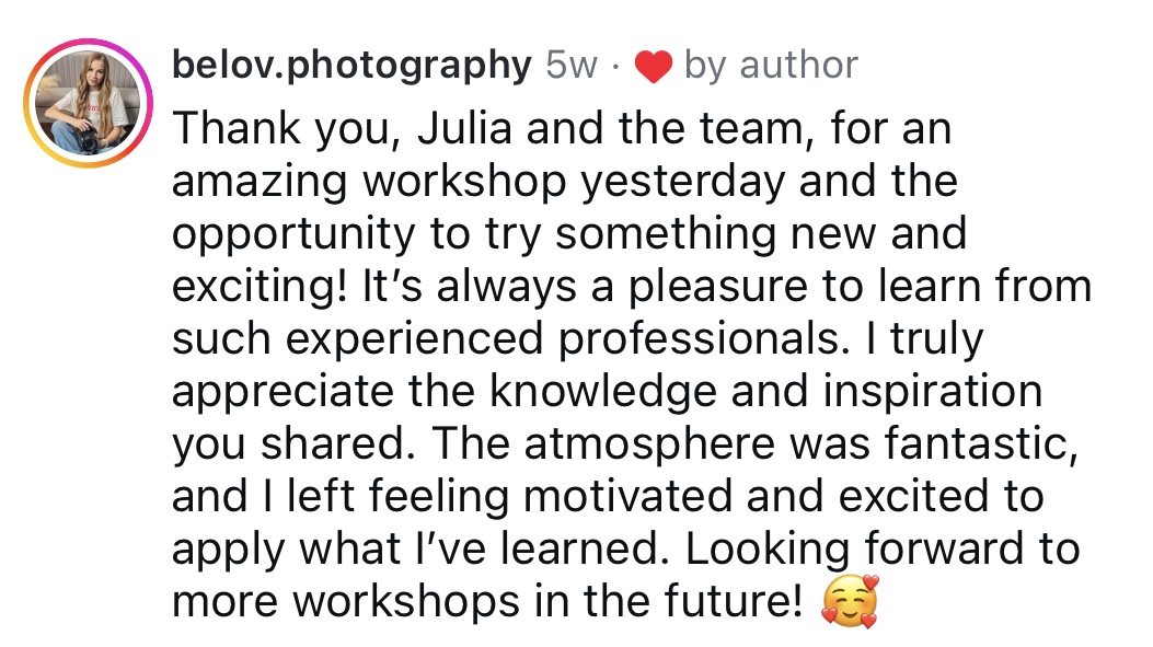 Lessons will take place in the evening and on weekends, with 2 lessons per week in www.marse-studios.com. The course includes both theoretical and practical components, allowing students to not only learn essential photography techniques but also build a real portfolio.